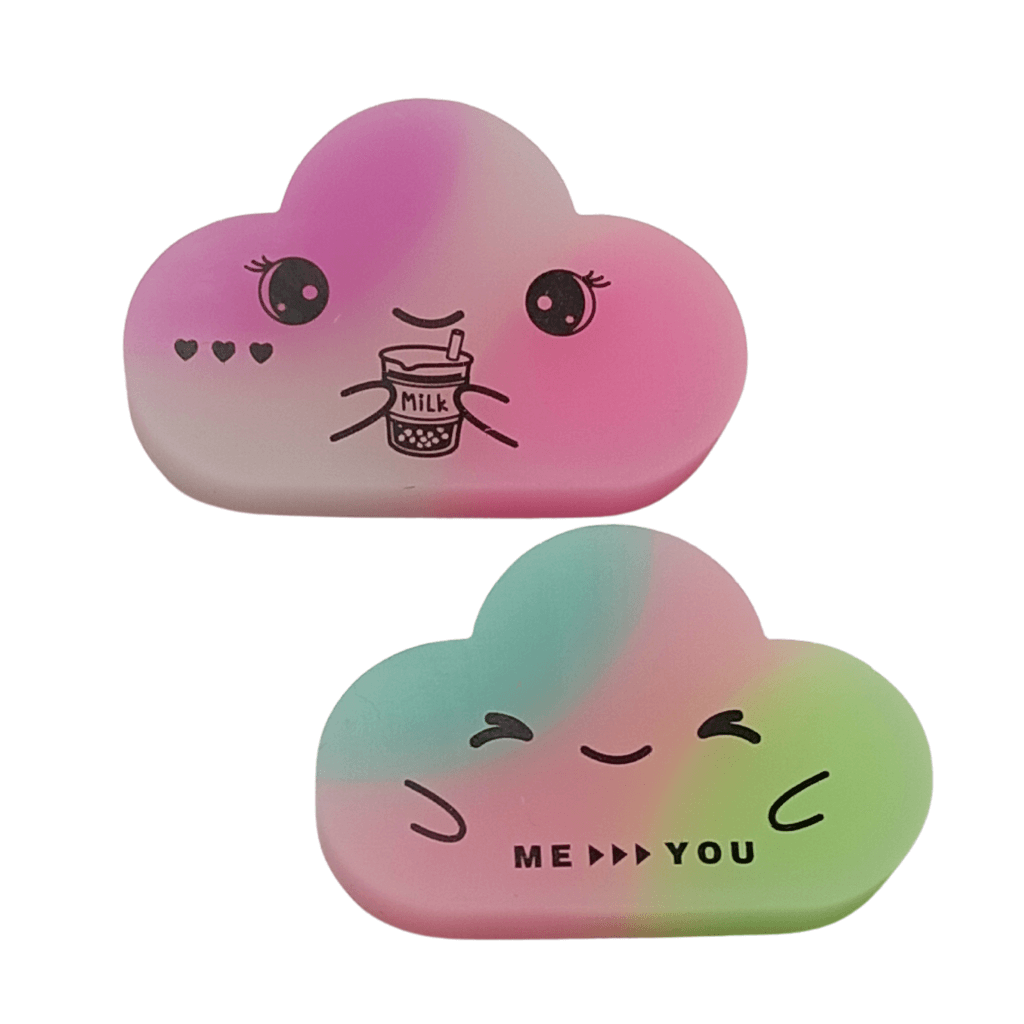Com um design encantador e funcional, nossa borracha em formato de nuvem com rostinho é o acessório perfeito para completar sua coleção de papelaria. Seja para uso próprio ou para presentear, esta borracha vai alegrar o seu dia a dia e tornar suas tarefas mais divertidas.