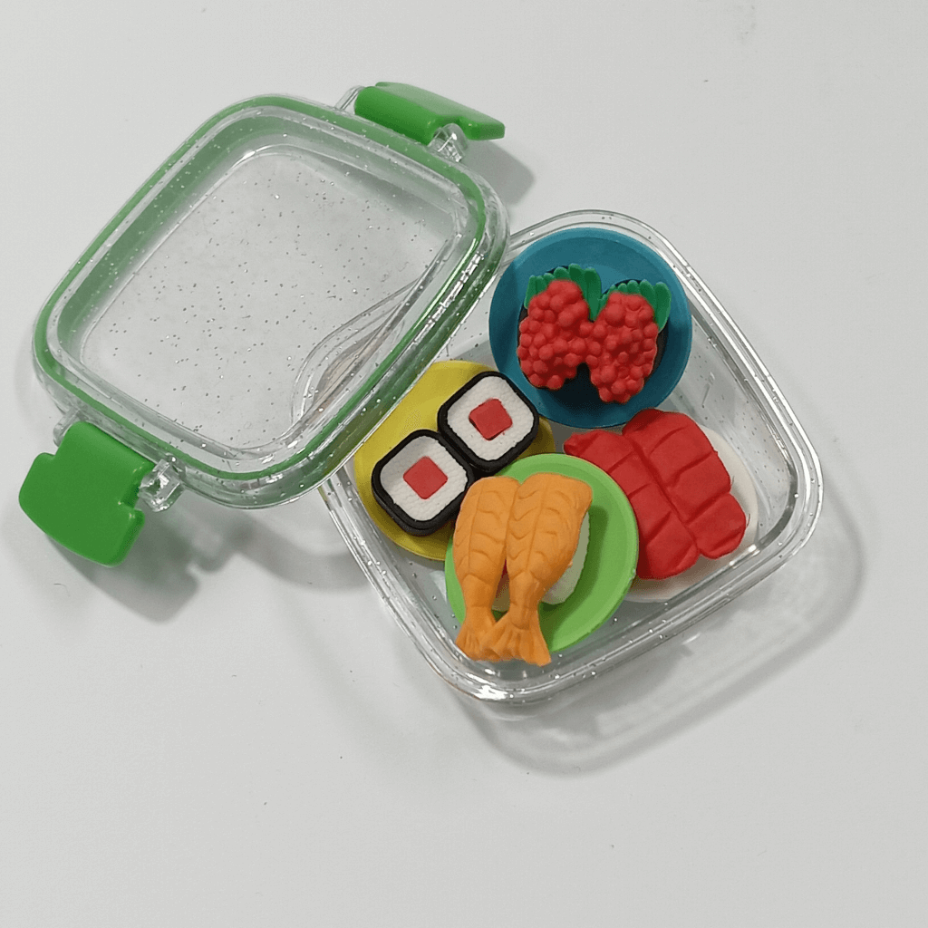 Adicione um toque de diversão e originalidade ao seu material de estudo ou escritório com nossa borracha em formato de marmitinha com desenho de sushi. Perfeita para apagar pequenos erros com muito estilo, esta borracha é ideal para crianças e adultos que adoram itens de papelaria criativos. Feita com materiais de alta qualidade, ela garante uma experiência de uso eficiente e divertida.