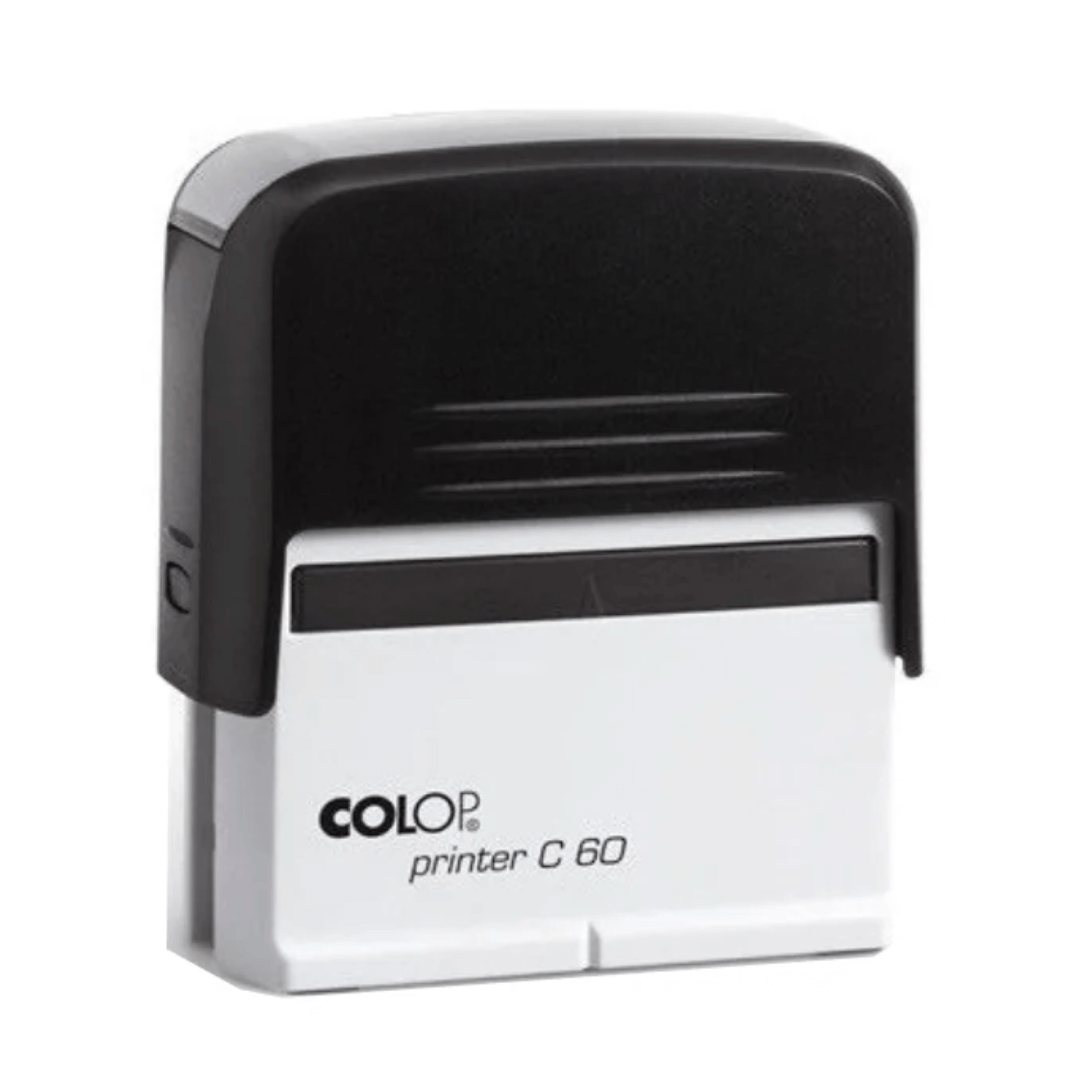 O carimbo automático COLOP 60 é um carimbo de origem Austríaca, muito prático e eficiente. Ele possui uma almofada embutida, travas nas laterais e uma ótima qualidade de impressão com cor intensa e excelente fixação no papel.