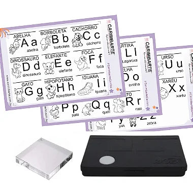 Kit Alfabeto 3 Cartelas de Carimbos - Base e Almofada