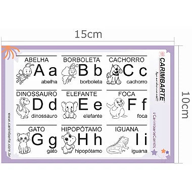 Descrição: Nossa Cartela de Carimbos de Alfabeto é a ferramenta perfeita para tornar o ensino do alfabeto uma experiência divertida e interativa. Ideal para crianças do ensino infantil e fundamental 1, este conjunto de carimbos promove a criatividade e o aprendizado ativo, tornando a alfabetização envolvente e eficaz.