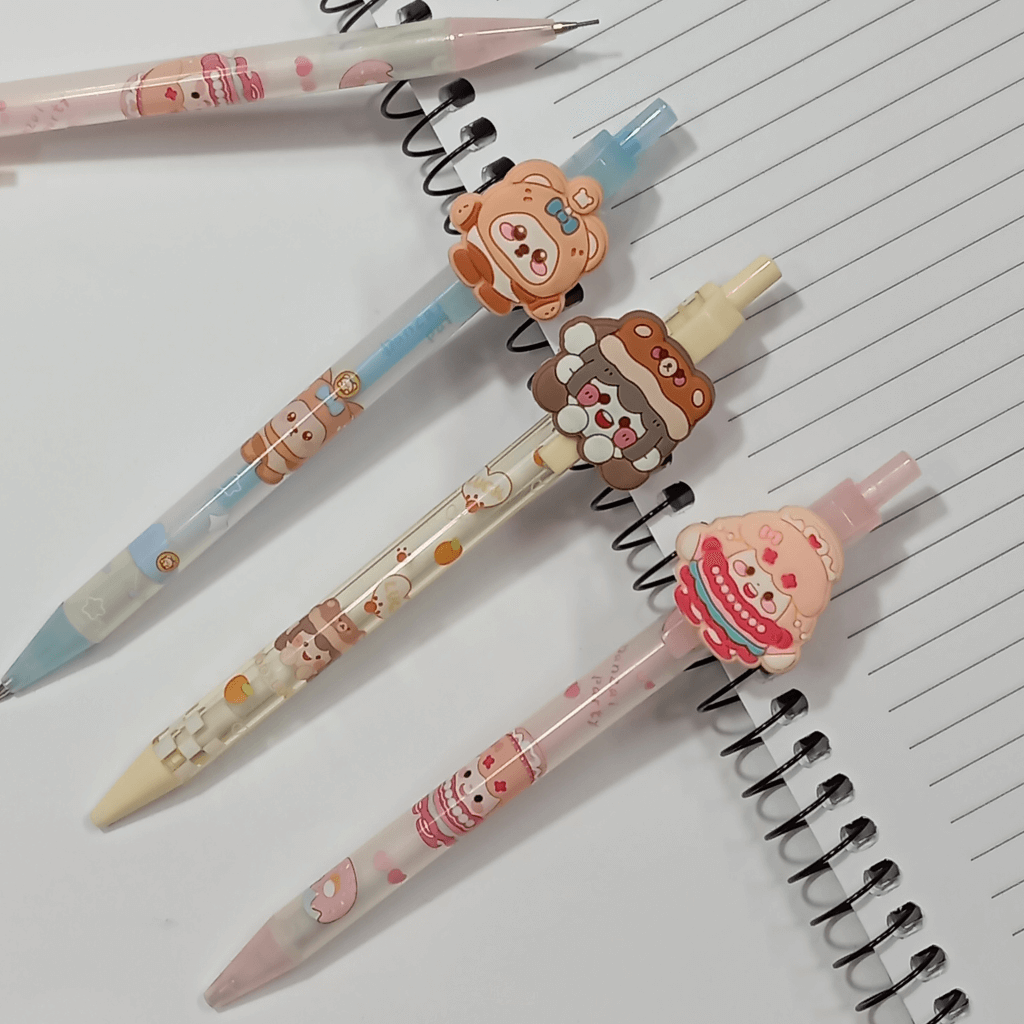 Desenhos Variados: Os desenhos na ponta da lapiseira serão enviados conforme a disponibilidade do nosso estoque, garantindo uma surpresa adorável a cada pedido.