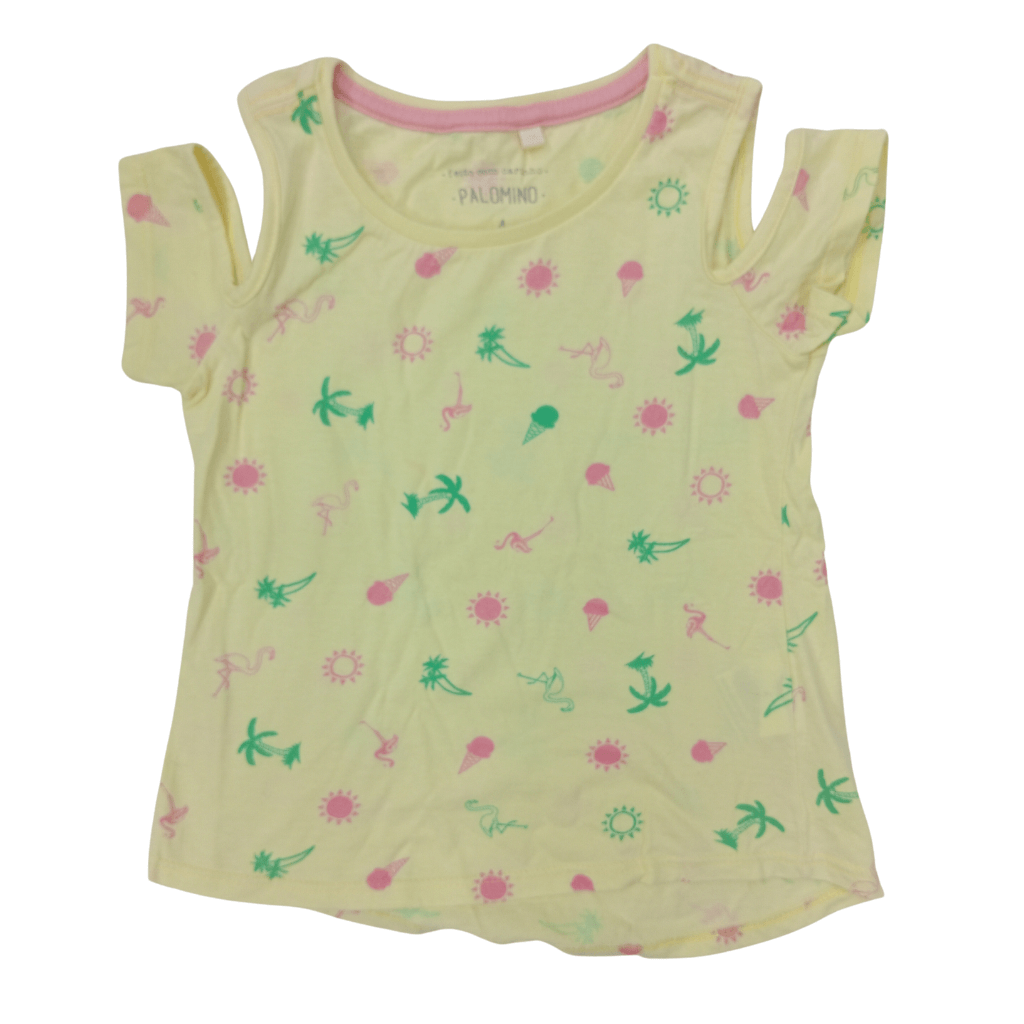 Blusinha de Verão Infantil // Tamanho 4 anos // Marca: Palomino C&A // Uma peça perfeita para os dias quentes com muito estilo! // Design charmoso: Camiseta amarela com detalhe de ombro de fora, criando um look leve e descolado. // Confortável: Ideal para os dias de verão, com tecido leve e fresquinho. // ✨Uma blusinha cheia de charme para deixar sua pequena ainda mais estilosa no calor!