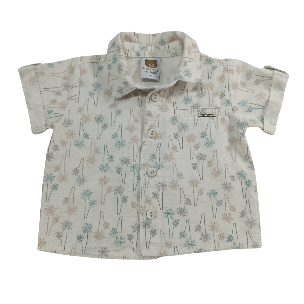 Camisa Aconchego do Bebê - Estilo e Conforto para o Menino! Tamanho: M (Bebê) Marca: Aconchego do Bebê Esta camisa da Aconchego do Bebê tem uma estampa de coqueiro, perfeita para os dias de verão. Leve e confortável, é ideal para manter o bebê fresquinho e cheio de estilo. Garanta a sua agora e adicione um toque de verão ao guarda-roupa do bebê!